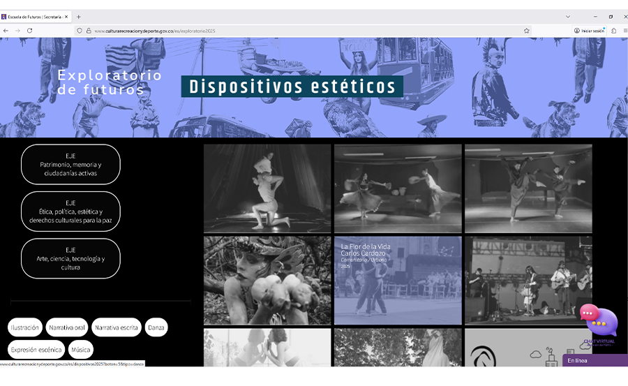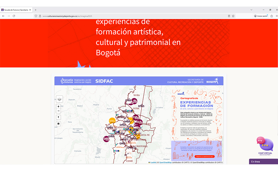 Design, development, and administration of a Drupal-based microsite for the Secretary of Culture of Bogotá, created to promote artistic training activities and present available programs, workshops, and courses. The project workflow included UX design in Figma for wireframing and prototyping, followed by custom front-end development using HTML and JavaScript within Drupal to achieve a unique, template-free design. As webmaster, I managed ongoing site administration, content management, and technical maintenance of the platform.